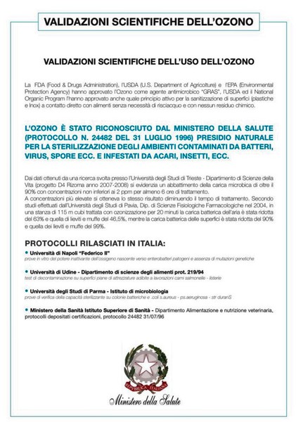 • Il trattamento di sanificazione ad ozono a secco è riconosciuto dal Ministero della Salute